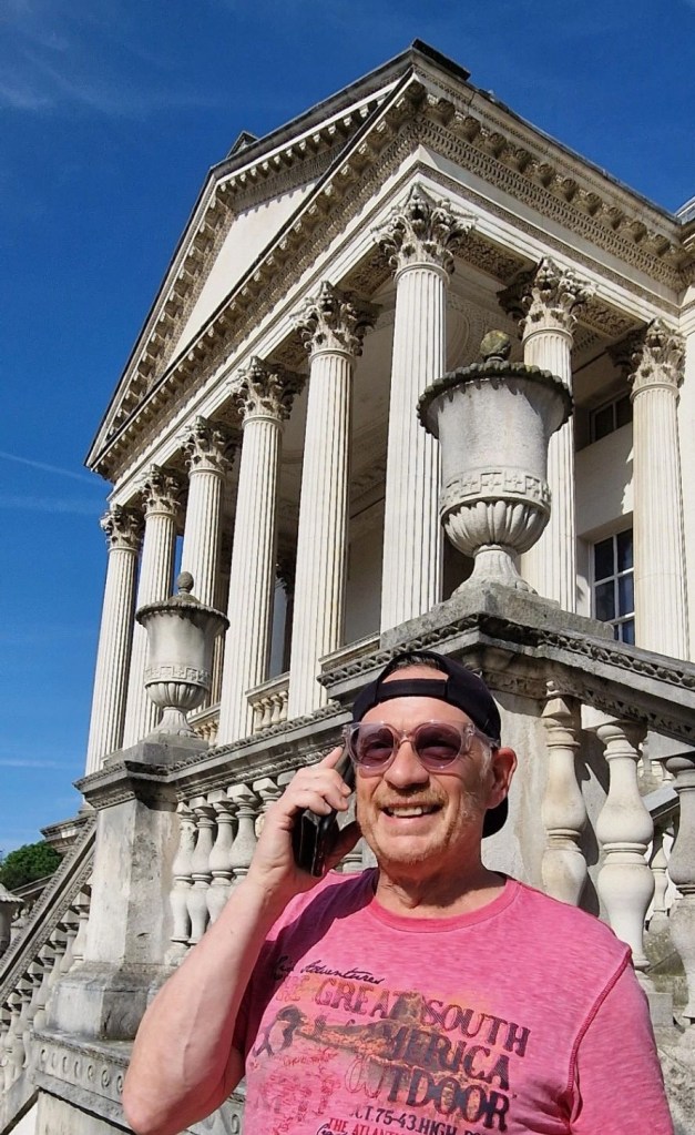 “Yes. That’s right. I’m at Chiswick House. Yes, the place where the Beatles filmed Paperback Writer”.