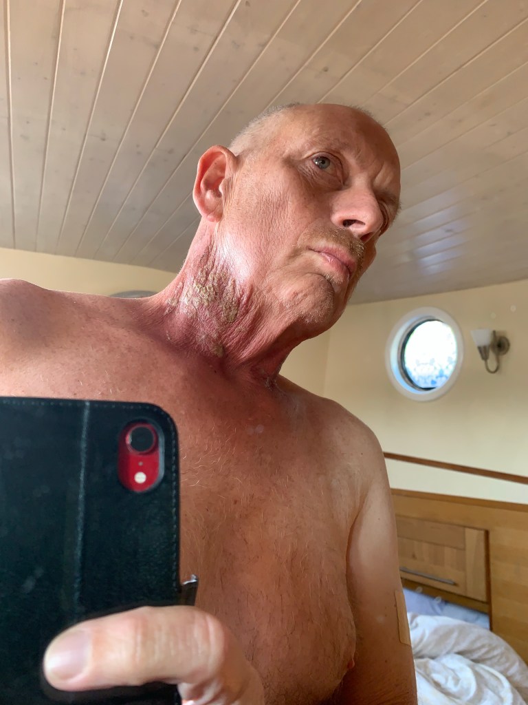 By the end of February (2021) I discovered a lump at the side of my neck. It was like an Adam’s apple and wasn’t a boil. I went to my GP, but because I’d moved on to a boat and I’m so lackadaisical with paperwork, the doctor wasn’t going to see me as I was no longer in their patch. I stood my ground and to be fair to them, they did see me.