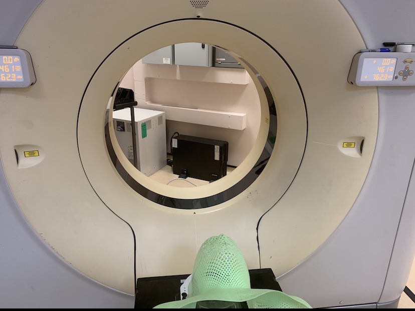At this point the senior radiotherapist offered to move a spacer from the chopping board headpiece thereby giving a fraction more tolerance. To be honest, I wonder if this is true or it is a type of placebo technique. Anyway, full credit to her as this time we made it.