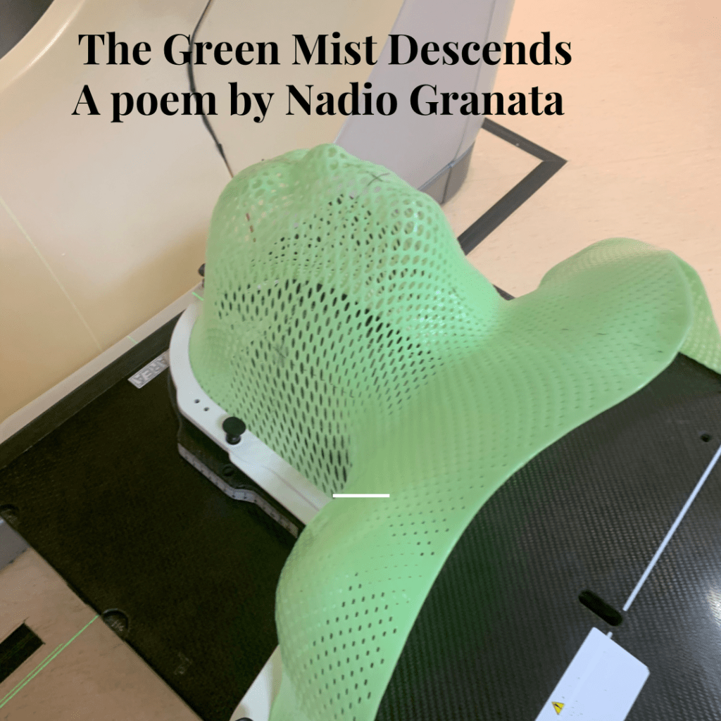 Like ballet dancers tap, tap, tapping on a pulsing heart, one more click and it’s now over. Just for one day. Please God, when will my recovery start? When will this green mist rise for the last time?